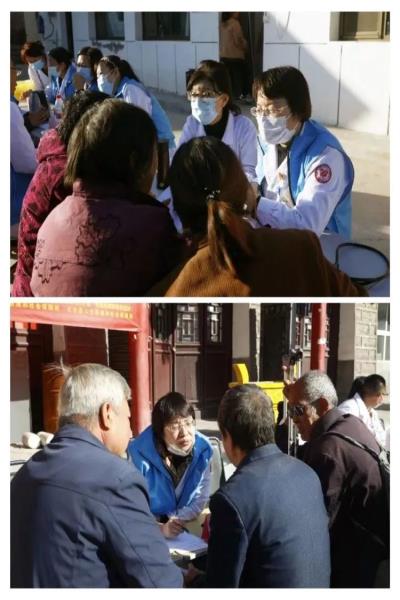 活动六:山西省基层卫生协会副会长任志英老师、神经内科一病区王建红副主任随山西省人社厅组织的“医疗卫生健康服务团山西五台行”的35位专家在五台县安家村、坪上村对48位脑血管病患者进行了义诊活动,摸清了五台基层实际情况,精心设计服务内容,为五台县百姓进行了“卒中重在预防”的健康科普教育、健康评估、用药指导及生活方式干预。