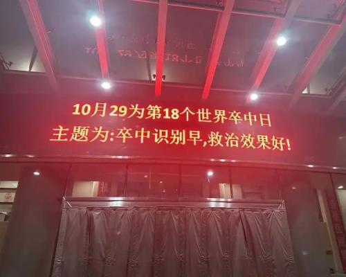 医院动态2023年10月29日,是第18个世界卒中日,中国卒中学会制定了中文宣传主题和口号:“卒中:重在预防”。维多利亚网络平台网址神经科作为国家高级卒中中心,在李伟荣主任的大力支持和细心筹划下,安排了一系列宣传活动,旨在动员全社会都来关注卒中、重视预防,提高我省居民健康科学素养水平,降低卒中的发病率、死亡率、残疾率和复发率。