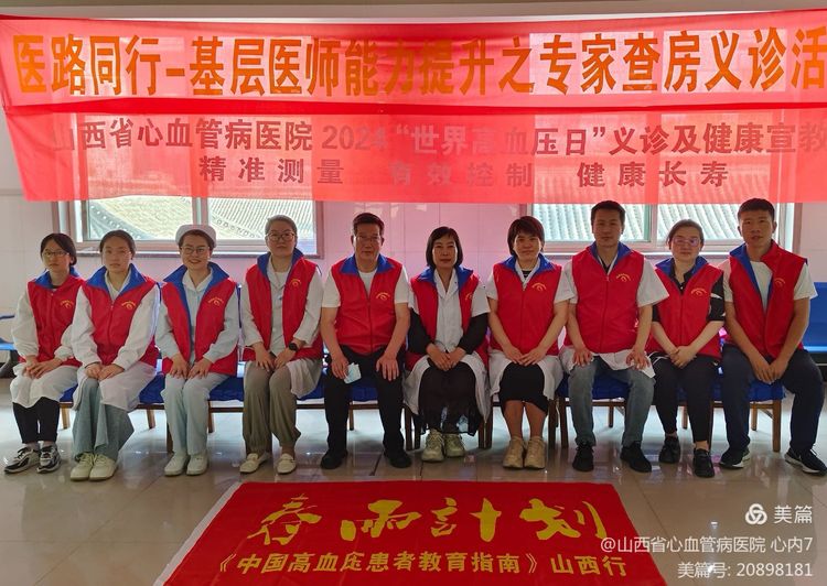 义诊现场,张亮清主任说:今年"世界高血压日"主题是"精准测量有效控制 健康长寿",开展世界高血压日义诊活动是普及防治知识,提升治疗效果的有效手段。希望通过此类活动使我省广大人民群众充分了解高血压疾病,形成正确的认知,建立科学防治的理念,做到未病先防,有病早医,尽量降低疾病的危害。