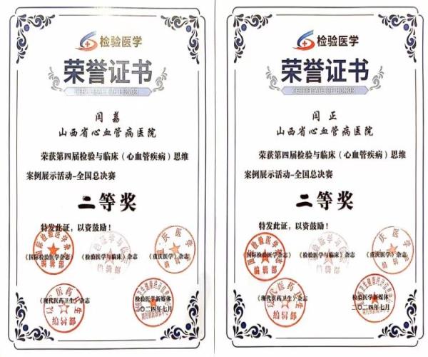 在激烈紧张的比赛中,我们同来自全国各地的优秀团队进行角逐,凭借着团队默契的配合、出色的专业技能以及对创新的深刻理解,我院检验科闫荔和心外科闫正最终脱颖而出,获得了二等奖。这枚奖章不仅是对两位选手辛勤付出的肯定,更是对我们团队实力和合作能力的高度认可。
