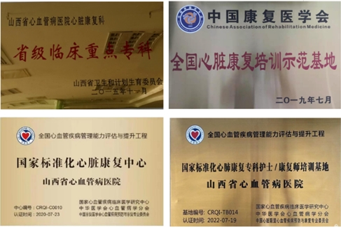 中心被授予首批“全国心脏康复培训基地”、“省级临床重点专科”、“全国心脏康复培训示范基地”、“CDQI国家标准化心脏康复示范中心”、“国家标准化心肺康复专科护士/康复师培训基地”。
