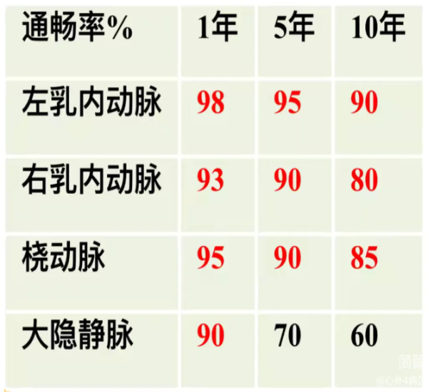1、桥血管全动脉化保证了患者更好的远期疗效,数据显示10年乳内动脉的远期通畅率高达90%,通俗地说就是不容易堵,而大隐静脉只有60%。患者再手术率低,生活质量显著提高。