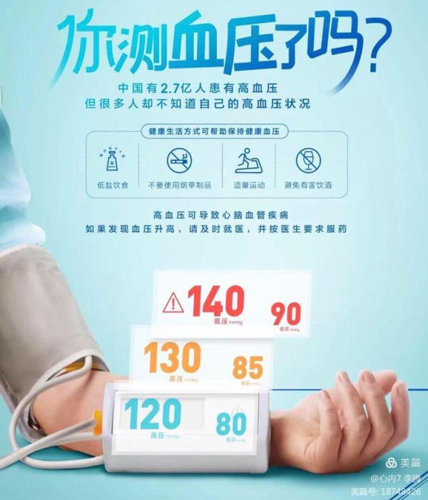 三、科学监测血压:鼓励居家进行血压监测,有条件可进行动态血压监测。晨起测量血压应在排尿后、未服用降压药、早饭前,晚间测量应在睡觉前,每次应按规范测量2-3次。