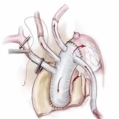 最终术中顺利给予实施了升主动脉置换+主动脉弓置换+“象鼻”支架植入术,尽管患者术前口服了负荷量的双联抗血小板药物,但是手术历经8小时顺利结束,目前患者已康复出院。