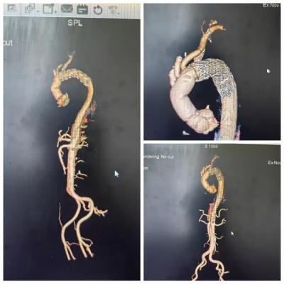 但是屋漏又遇连阴雨,由于患者术前主动脉CTA提示肋间动脉和脊髓动脉起至假腔,截瘫概率非常大,结果患者在术后不幸出现了双下肢不能活动,于是积极请神经外科会诊,并给予腰椎穿刺行脑脊液引流,在穿刺引流后的第二天,患者双下肢逐渐开始可以活动,最终在多学科合作的积极治疗下患者顺利康复,目前患者已康复出院。