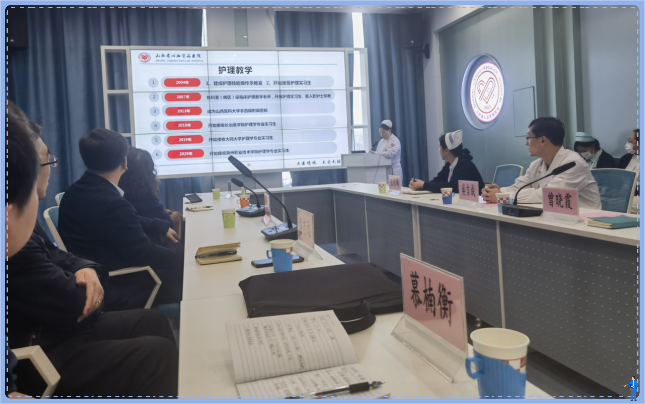 我院护理分管院长奚吉成、护理部曾晓霞主任、王永梅副主任及相关科室(病区)护士长在第一住院部远程诊断中心热情接待了来宾。