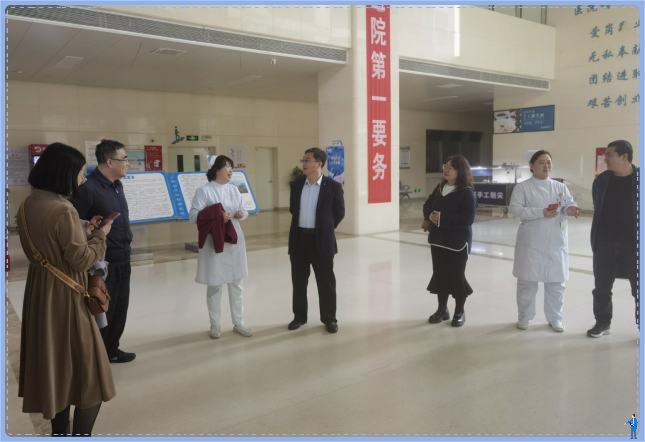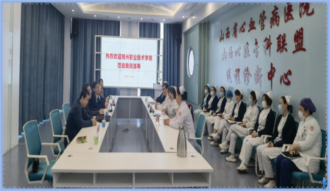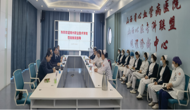 2024年3月16日下午,山西省朔州职业技术学院孟良玉院长、实习实训中心蔡志远主任、医护系主任杨文静主任、实习实训中心科室负责人穆楠衡科长、实习指导教师吴文艳老师和孙文敏老师一行六人来我院调研交流工作。