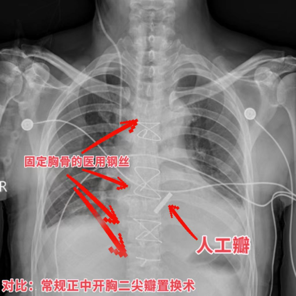 传统的心脏瓣膜置换手术都需要胸部正中做切口,锯开胸骨来进行手术。通过此切口进行手术仍然是治疗心脏瓣膜病变的“金标准”,优点是手术确切,具有良好的短期和远期疗效。这种方式手术切口和创伤较大、术后恢复也较慢,而且会留下长约15-20cm的疤痕。