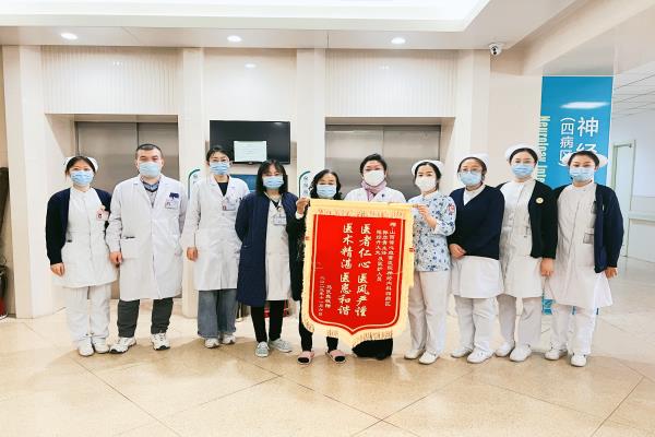 患者和家属打心底感谢我院医护康人员对他们的照顾,送来“医者仁心”的锦旗表达内心的感谢。