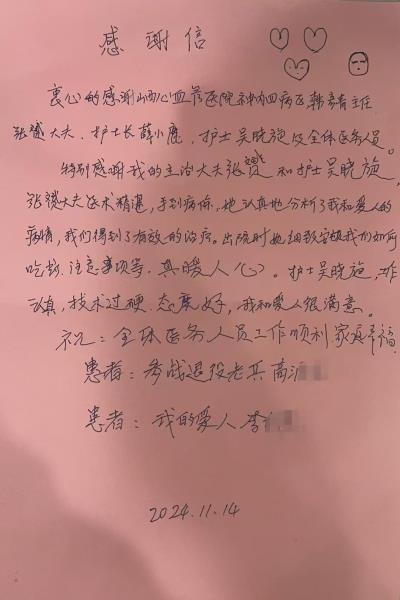 感谢脑血管病、眩晕和头晕、帕金森病亚专业骨干张赟主治医师;感谢薛小鹿护士长、吴晓璇主管护师、感谢医、护、康团队,感谢为国参战退伍老兵和家属的信任!