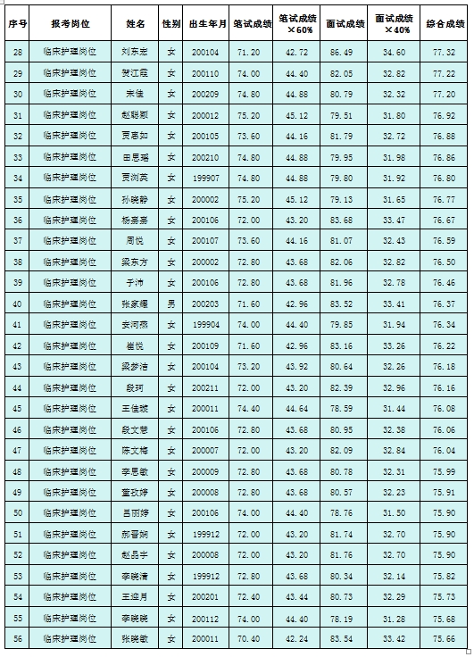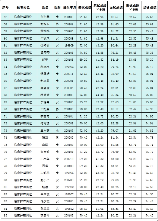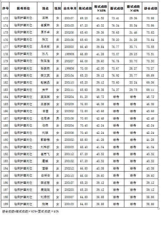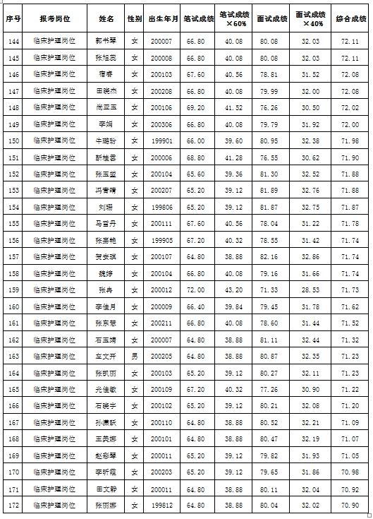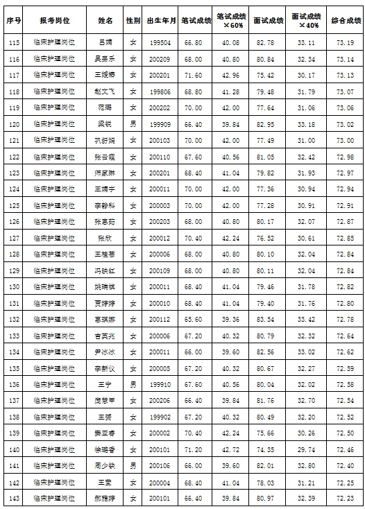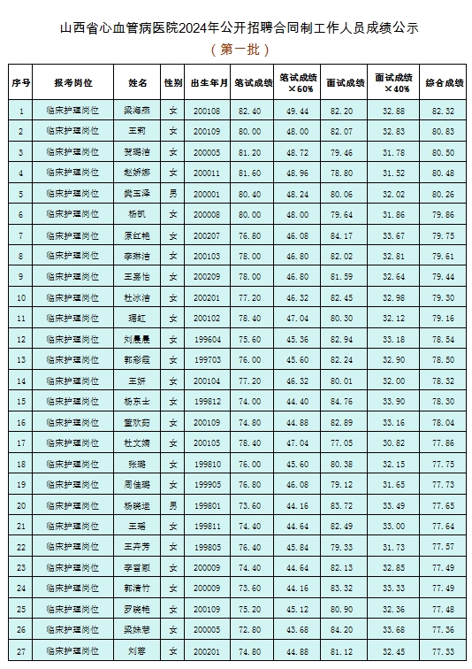 我院2024年公开招聘合同制工作人员成绩公示(第一批)