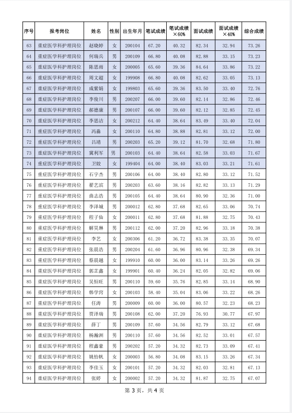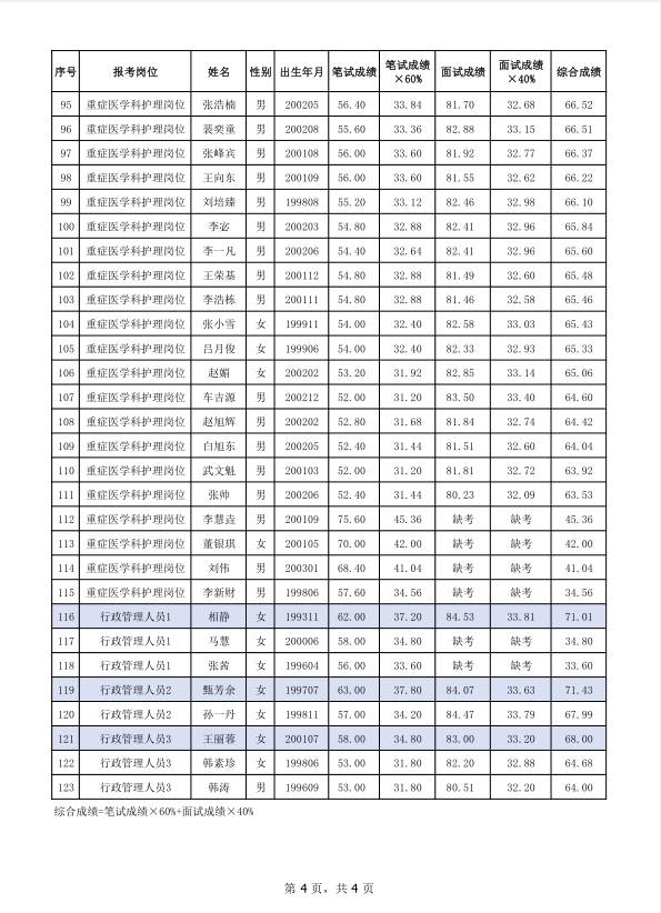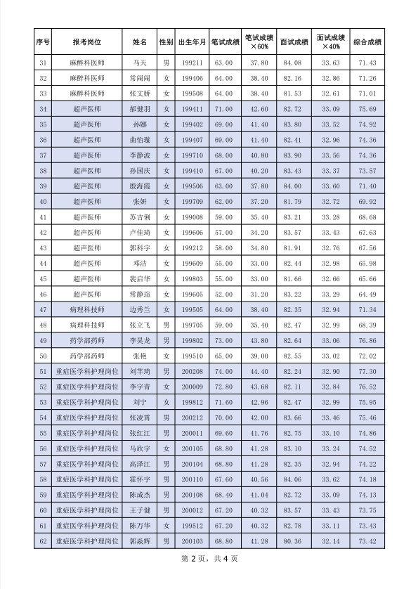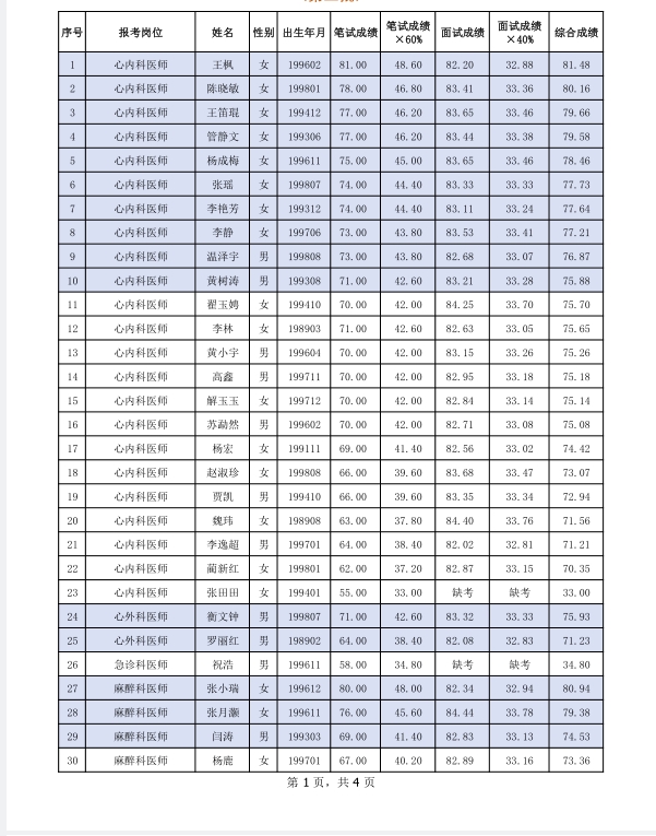 我院2024年公开招聘合同制工作人员成绩公示 (第二批)